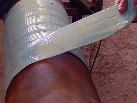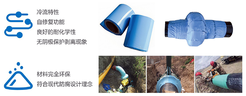 NTD系列粘弹体防腐胶带是专门为埋地管道以及其它需要防腐的异形设备诸如法兰、阀门、泵等所研究设计的一种防腐新产品。本产品是一种永不固化的粘弹性聚合物,具有独特的冷流特性,在防腐及修复的过程中可以达到自修复功能,以达到完全保护的效果。本产品无须涂刷底漆,无脱落,无开裂,无硬化,具有很强的粘结力,良好的耐化学性且无阴极保护剥离现象,彻底杜绝水分侵入及微生物腐蚀,使其具有独特的长效性。