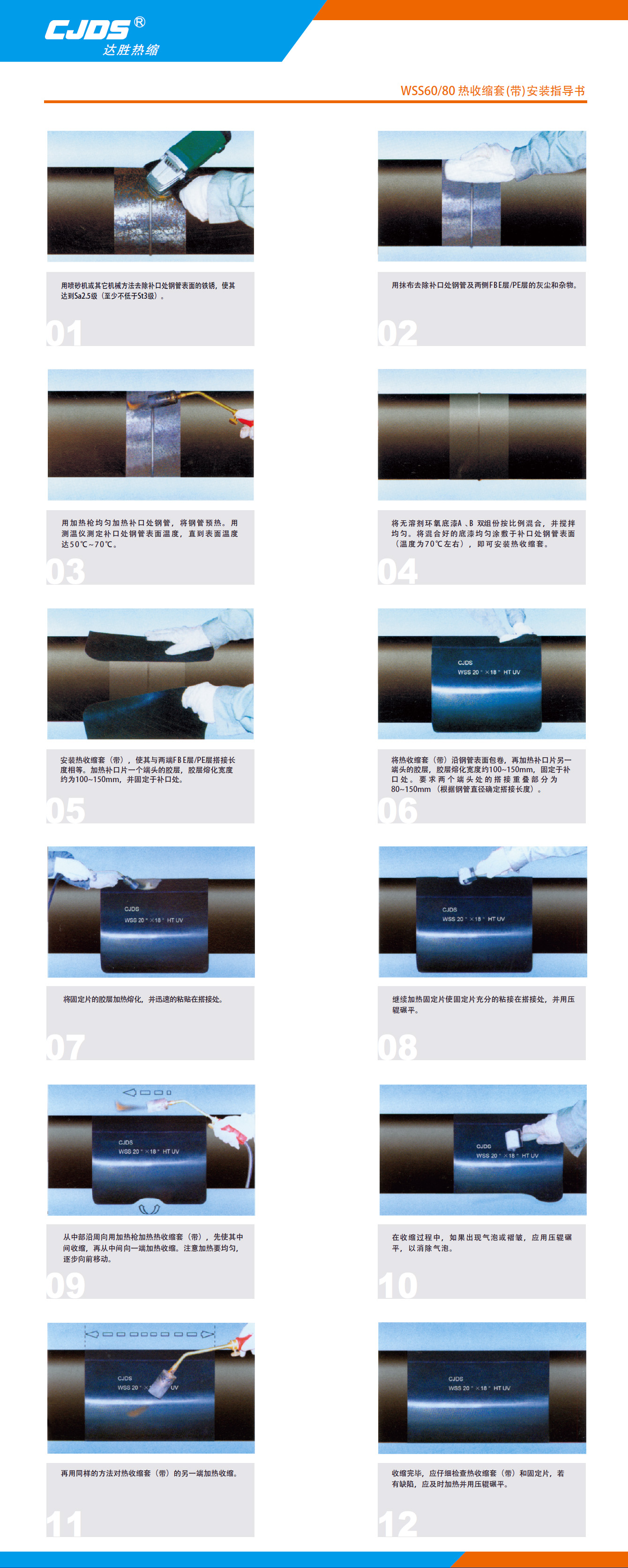 TS热收缩套在加热安装时,基材在径向收缩的同时,内部复合胶层熔化,紧紧地包覆在补口处,与基材一起在管道外形成了一个牢固的防腐体,具有优异的耐磨损、耐腐蚀、抗冲击及良好的抗紫外线和光老化性能。